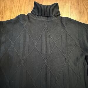 The S Christina 100% Cashmere Black Turtleneck Sweater for women in size Large/XL features long sleeves and a pullover style. Made by LORD & TAYLOR, this high-quality sweater is crafted from luxurious cashmere material, providing warmth and softness for the colder seasons. The classic turtleneck design in a timeless black color makes it a versatile and elegant addition to any wardrobe.