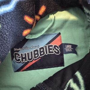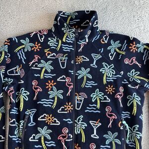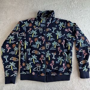S Chubbies Fleece Jacket Mens L Blue Neon Lights Tropical Print Full Zip Pockets