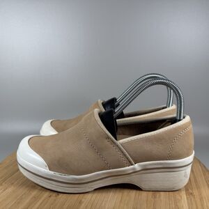 S Dansko Vegan Volley Clogs Womens 37 6.5-7 Tan Canvas Slip On Shoes