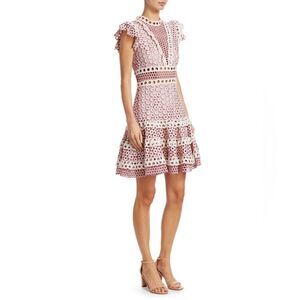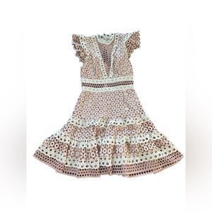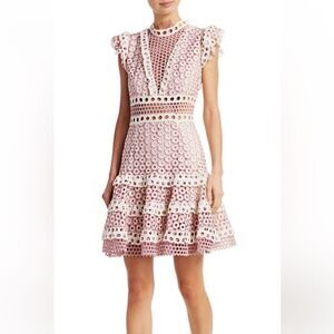 S E A Josie Crochet Lace Blush and White Mini Ruffle Dress sz 2