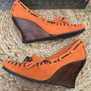 S Edelman orange wedge shoes size 10