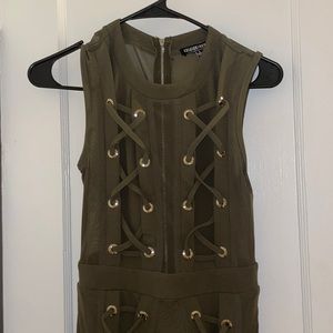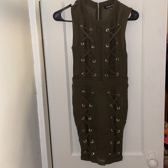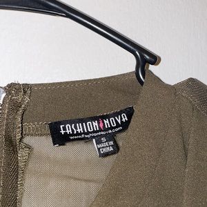 Mini olive green club dress. Mesh back and details on the side. FASHION NOVA Sz Small. Only been worn ONCE!