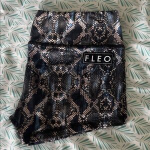 Sz S brown, tan, dark green/blue leopard print. Worn only a few times. single lined. True high contour cut
