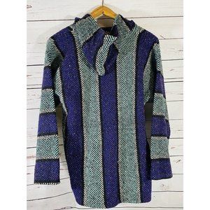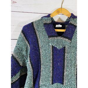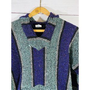S Focus Chunky Mexican Southwest Poncho Hippie Festival Hoodie Drug Rug Size XL Jerga Surf
