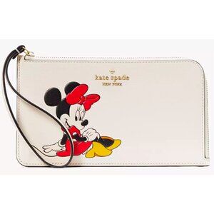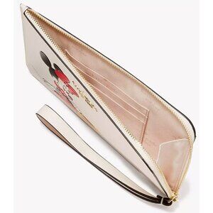 S Kate Spade Medium L-Zip Wristlet Disney Minnie Mouse Ivory White KG659 NWT$159