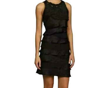 S L FASHIONS WOMEN'S SHIMMER AND CHIFFON SLEEVELESS TIERED DRESS SIZE 12 BLACK