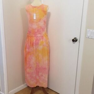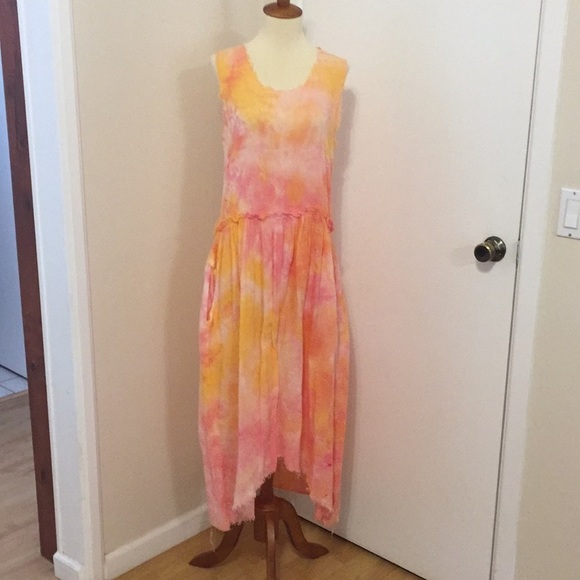 This is a brand new LOVE TANJANE Dress. Lightweight, gauzy material with intentionally raw edges. Has pockets. Measures 18.5 inches across the bust and is about 47 inches long in the front and about 51 inches long in the back. Made in Southern California and hand dyed. Price is firm. Thanks for looking.