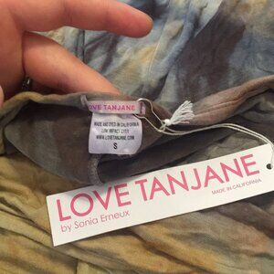 This is a brand new LOVE TANJANE Dress. Long sleeves. Soft and stretchy material. Raw edges. Measures 16 inches across the bust and is about 60 inches in length. Made in southern california and hand dyed. Price is firm. Thanks for looking.