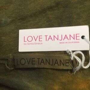 This is a brand new LOVE TANJANE Linen top. A light amount of stretch to the material. Intentionally raw edges. Measures 19.5 inches across the bust and is about 23.5 inches in length. Made in southern california and hand dyed. Price is firm. Thanks for looking.