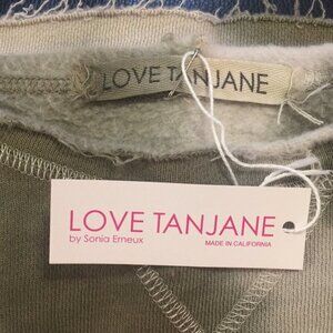 This is a brand new LOVE TANJANE Sweater. Fuzzy inside. Distressed look with raw edges. Poly/Cotton blend. Measures 20 inches across the bust and is about 21 inches in length. Made in southern california and hand dyed. Price is firm. Thanks for looking.