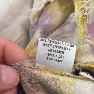 This is a brand new LOVE TANJANE Top. Material has a silky like feel to it. Intentionally raw edges. V neck in the front. Measures 21 inches across the bust and is about 21 inches in length. Made in southern california and hand dyed. Gray/purple and golden yellow. Price is firm. Thanks for looking.