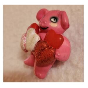 S Lehman 1984 Pink Pig Holding Hearts Glitter Brooch Pin Kawaii Twee Eclectic