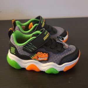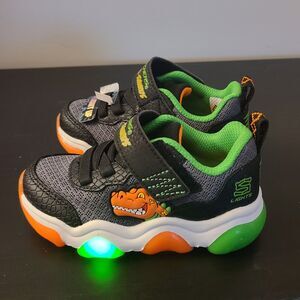 S Lights By Skechers Dinosaur Bolt 2.0 Sneakers Stretch Toddler Boy Size 7 New