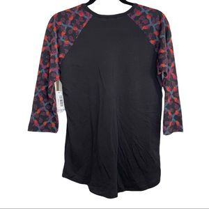 S Randy with blue, red and purple geometric 3/4 sleeves