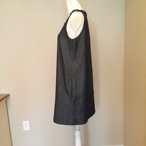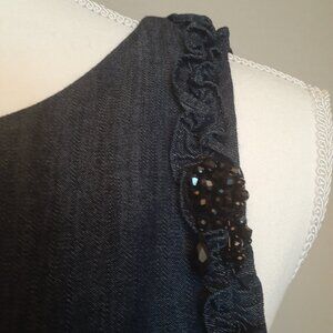 Note, the size/content/ care tag has been removed - it is 100% cotton denim and can be washed cold/delicate cycles and air dried