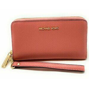 S Michael Kors Jet Set Travel Phone Case Wallet Wristlet Rose Leather / Gold FS