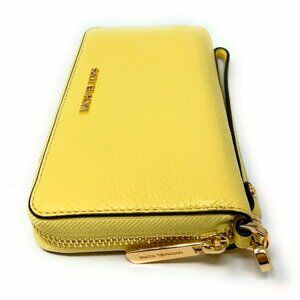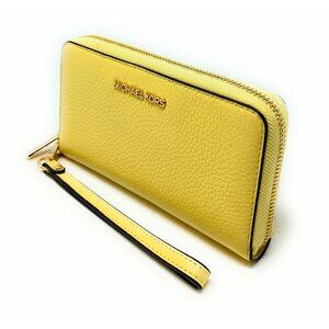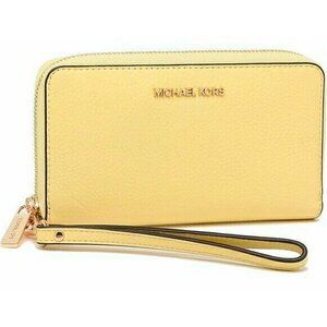 S Michael Kors Jet Set Travel Phone Case Wallet Wristlet Yellow Leather / Gold
