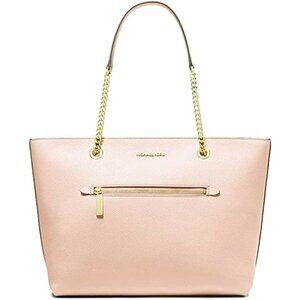 S Michael Kors Medium Front Zip Chain Tote Buff Leather 35F2GTTT2L NWT $448