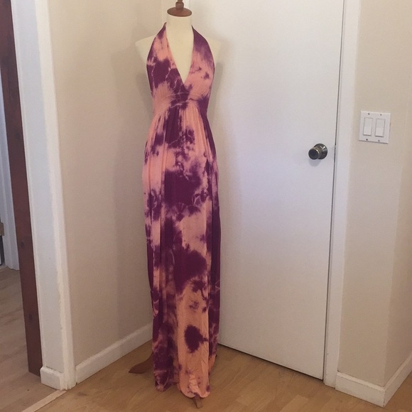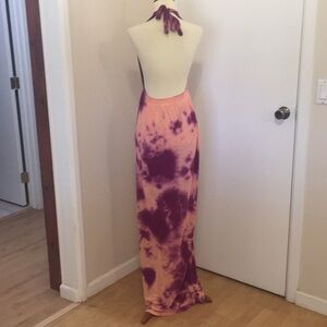 This is a brand new LOVE TANJANE halter dress. Soft and stretchy material. Intentionally raw edges. I am not sure how I would give meaningful measurements due to the open back and adjustable length due to being able to alter where it is tied in the back. I will mention though, that this fits true to size and my mannequin is currently set to a height of 5'6. Made in southern California and hand dyed. Price is firm. Thanks for looking.