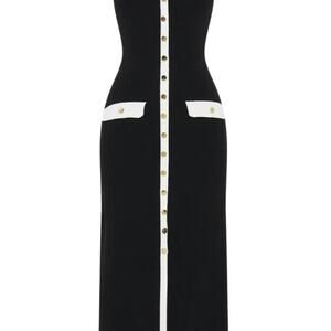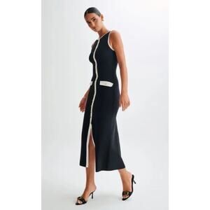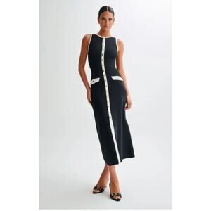 (S) NWT Meshki /Evenuel Sawyer Contrast Button Ribbed Maxi Dress Black/White