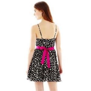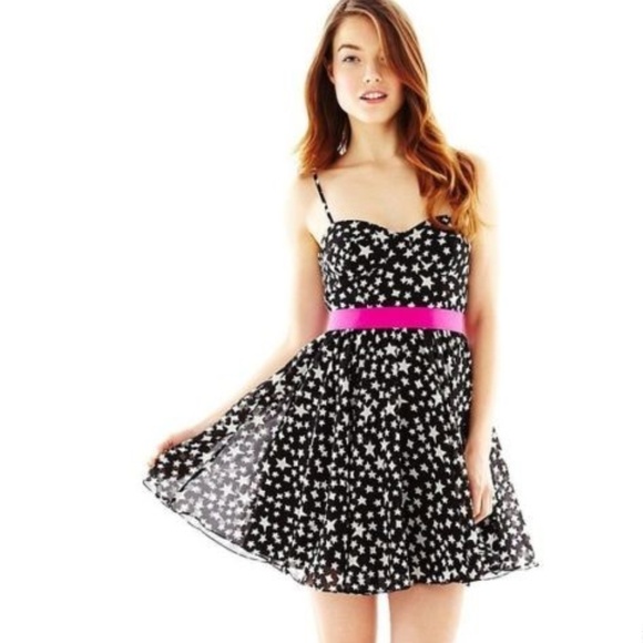 Dance under the moon in a chiffon print dress sprinkled with stars and finished with a contrasting belt.