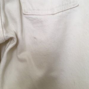 High waisted white jeans. Says size 26 and length 30 but fits like a size 24 or 0. Has two stains (shown in pictures) that are black but can easily be taken off with wash. Measurements: Waist to inseam: 10.5 inches, Waist 25 inches, Hips 17 inches, Length 28.5