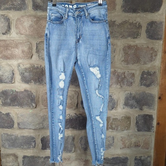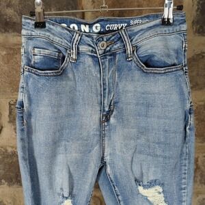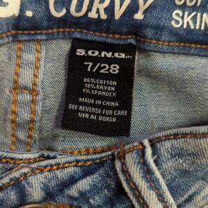 S. O. N. G. Jeans Curvy Acid Washed Junior's Size 7 Skinny Stretch Distressed