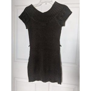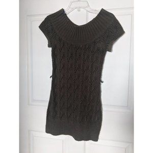 Fitted knit dress with belt loops. No belt. Hits right at the knee.