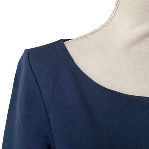 S Oliver dress, colorblock shift dress, navy turquoise dress, European designer dress, EU 36 dress, XS colorblock dress, modern shift dress, workwear dress, minimalist chic dress, business casual outfit, contemporary European brand, navy turquoise colorblock, 3/4 sleeve dress, tailored shift dress, sheath dress, modern office dress, classic colorblock style, polished day dress, sophisticated work dress, versatile cocktail dress, timeless European style, structured shift silhouette, chic designer dress