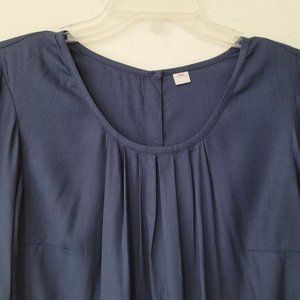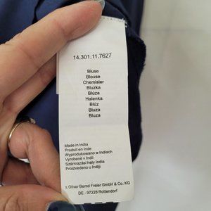S Oliver Top Women 10 Navy Blue Button Back Long Sleeve Blouse Pleated