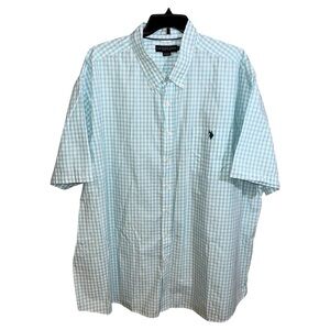 S. Polo Assn. Shirt Men’s Size 4XLT White Teal Checks Short Sleeve Button Front