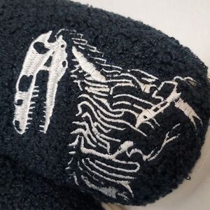S + R Dino kids slippers, size 3, dk gray/white, slip on, soft toe, rubber sole textured bottom, comfy soft uppers, cushioned insole, lightweight, new without tags, very good condition