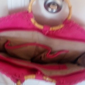 This S R Pink Leather Bag has never been used. It is well made with Bamboo Handles. Great for a Casual Summer Evening. This bag will finish off an outfit and make a statement. ENJOY AND HAVE FUN WITH ACCESSORIES!!!