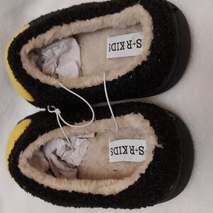 S + R kids slippers, size 2, black/yellow, slip on, soft toe, rubber sole textured bottom, comfy soft uppers, cushioned insole, lightweight, new without tags, very good condition