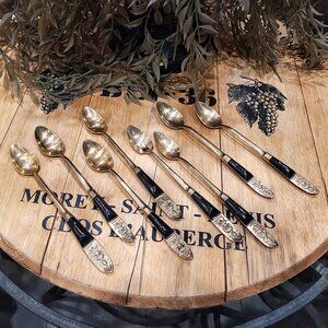 Vintage S. SAMRAN THAILAND Buddha Dancer Bronze/Brass Ice Tea Spoon Flatware Set ~ This Listing is for a Set of 8 Ice Tea Spoons ~ Great Vintage Condition ~ Perfect for Ice Tea or Bar Swizzle Stick Style Spoons