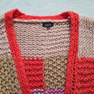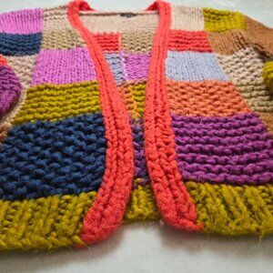 S Saachi x Anthropologie chunky rainbow colorblock knit cardigan granny sweater