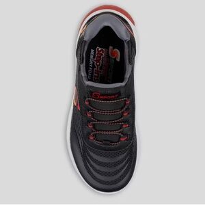 Skechers Hands Free Step-Ins for an easy fit Skechers Memory Foam cushioned comfort insole Synthetic and mesh upper Slip-on style with stretch laces and S Sport logo Soft fabric lining, shock-absorbing EVA midsole with a heel tech piece and flexible traction outsole Description Simply step in and go with convenient comfort wearing S Sport by Skechers Kids' Ryle.