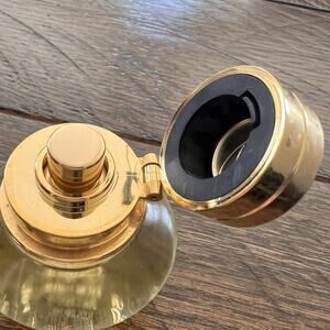 Vintage Perfume! Hinged flip top lid. Spray atomizer. Slight tarnish on top of lid.