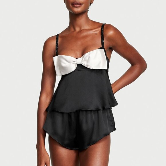 Brand new with tags S Victoria's Secret Bow-Topped Satin Cami Set NWT w/ shine straps