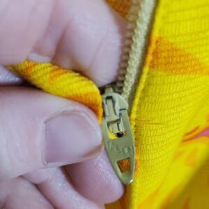 No size tag, estimated as size small, but please review the flat measurements in photo #3, demonstrated on a 36" bust mannequin. I'm not sure what the material is, feels like cotton. I noted no stains or flaws in this vintage gem, side seam pockets, darts and bust shaping, talon zipper closure.