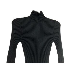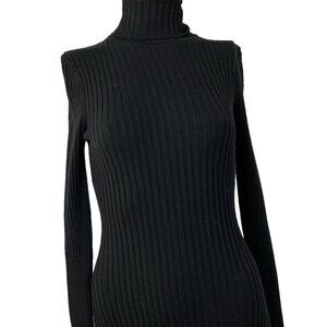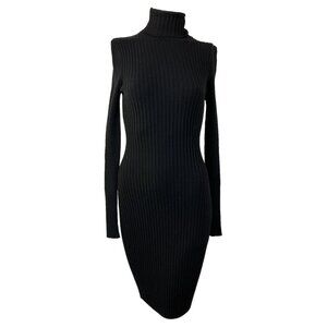 S Wolford Ribbed Neck Stretch Turtleneck Dress Black Bodycon Pencil Wool Blend