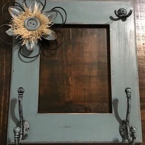 3 piece jewelry -trinket ensemble for bathroom or bedroom. Frame has hooks at top right and bottom corners to hang necklaces, bracelets, etc. Chest with drawers is perfect for storing rings, earrings, charms, and pins. Small trinket box is perfect for snap-on gems or wha t ever you want. I also made an antique white. Set for myself and I love jewelry and this really sets off my bathroom and has 110 uses. Find your favorite “go to” jewelry quickly on those rushed mornings.