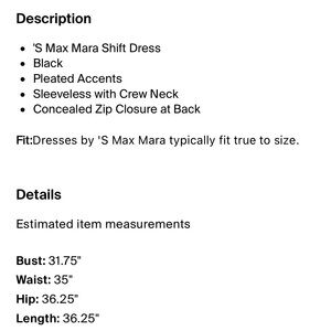 S max Mara crew neck Sophisticated Black Sleeveless mini Dress