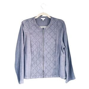 J. Jill Blue 100% Muslin Cotton Quilted Zip Jacket Size Medium