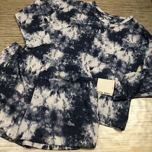 S-12 ANNE KLEIN comfy Pajama shorts Set Loungewear BLUE TIE DYE size L