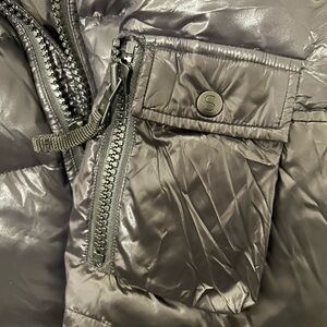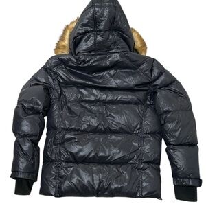 The S13 Women's Kylie Down Puffer Jacket in black, size S, is a fashionable and functional outerwear option for women. Made with a nylon outer shell and featuring a faux fur hood.