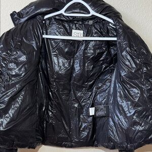 Stay warm and stylish with this sleek black puffer jacket. Perfect for chilly days.