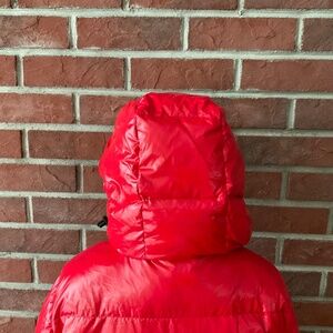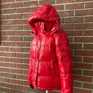 S13 Lexie Hooded Water-Resistant Red Shiny Luxurious Duck Down Puffer Coat SizeL