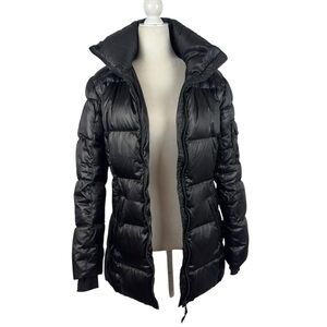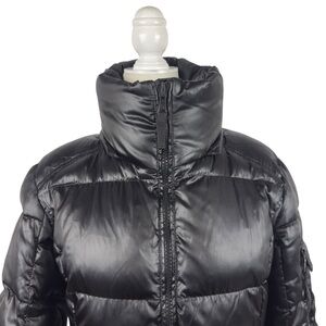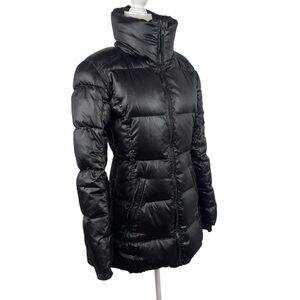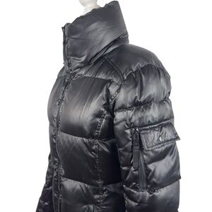 S13 NY Kylie Down Puffer Jacket Women S Black Nylon Coat Cuff Thumbholes No Hood