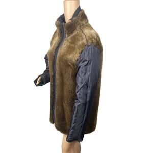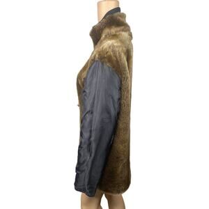 S13 NYC Black Brown Faux Fur Funnel Mock Neck Puff Jacket SZ M